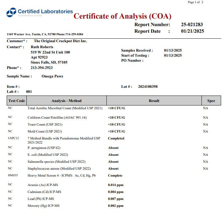 Omega Pawz by Dr. Ruth Roberts is a liquid omega 3 oil for dogs and cats, thoughtfully made with quality...